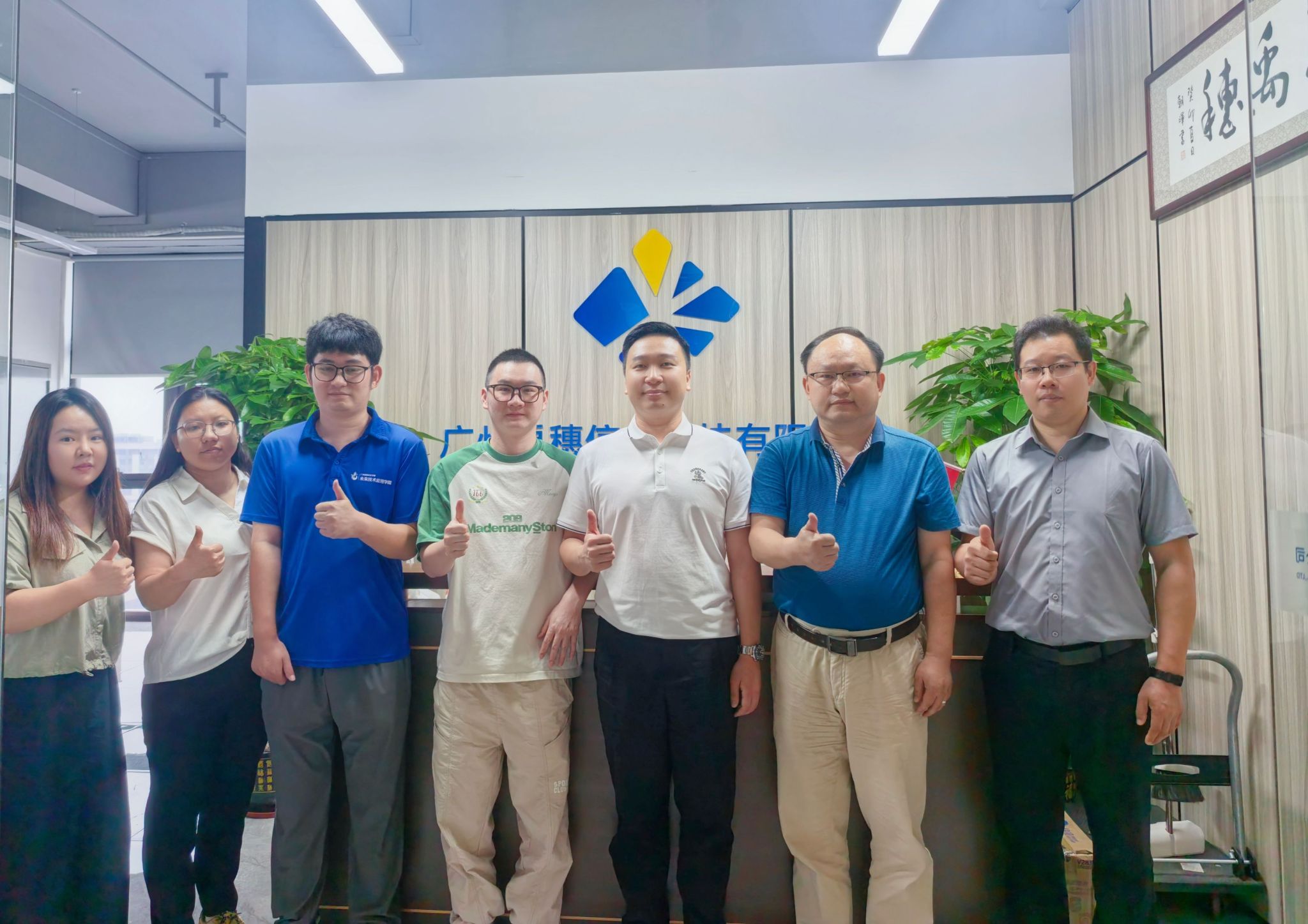 为深化产教融合,探索人才培养新模式,8月22日上午,suncitygroup太阳集团人工智能教研室一行在主任姚袁的带领下,赴广州禹穗信息科技有限公司进行实地走访与交流洽谈。本次走访团队包括了吴良胜教授以及李哲宏、赵鑫及王明欢老师,企业方由赖广璜经理一行领导接待,双方旨在就共育高素质技术技能人才进行深入对接。