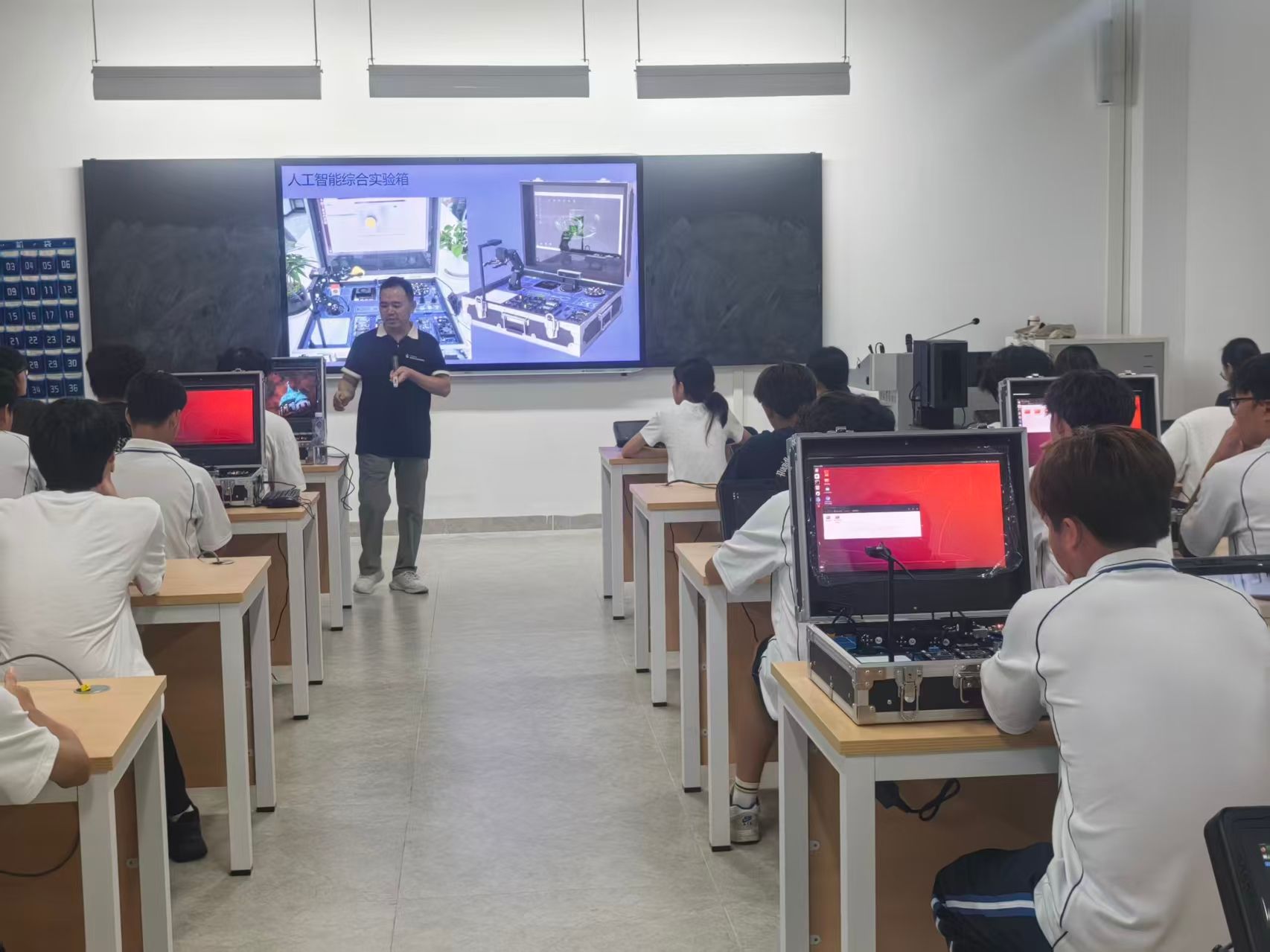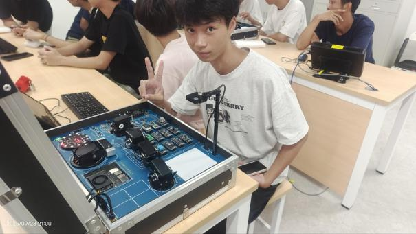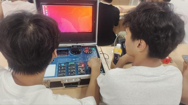 9月28日至29日晚间,在专业负责人潘伟祥博士、李哲宏老师的带领下,新生们分批参观了人工智能应用实训室。从灵活避障的ROS智能驾驶小车,到精准执行视觉分拣任务的机械臂,再到功能完备的AI+教学实验平台,一系列前沿设备令同学们目不暇接。