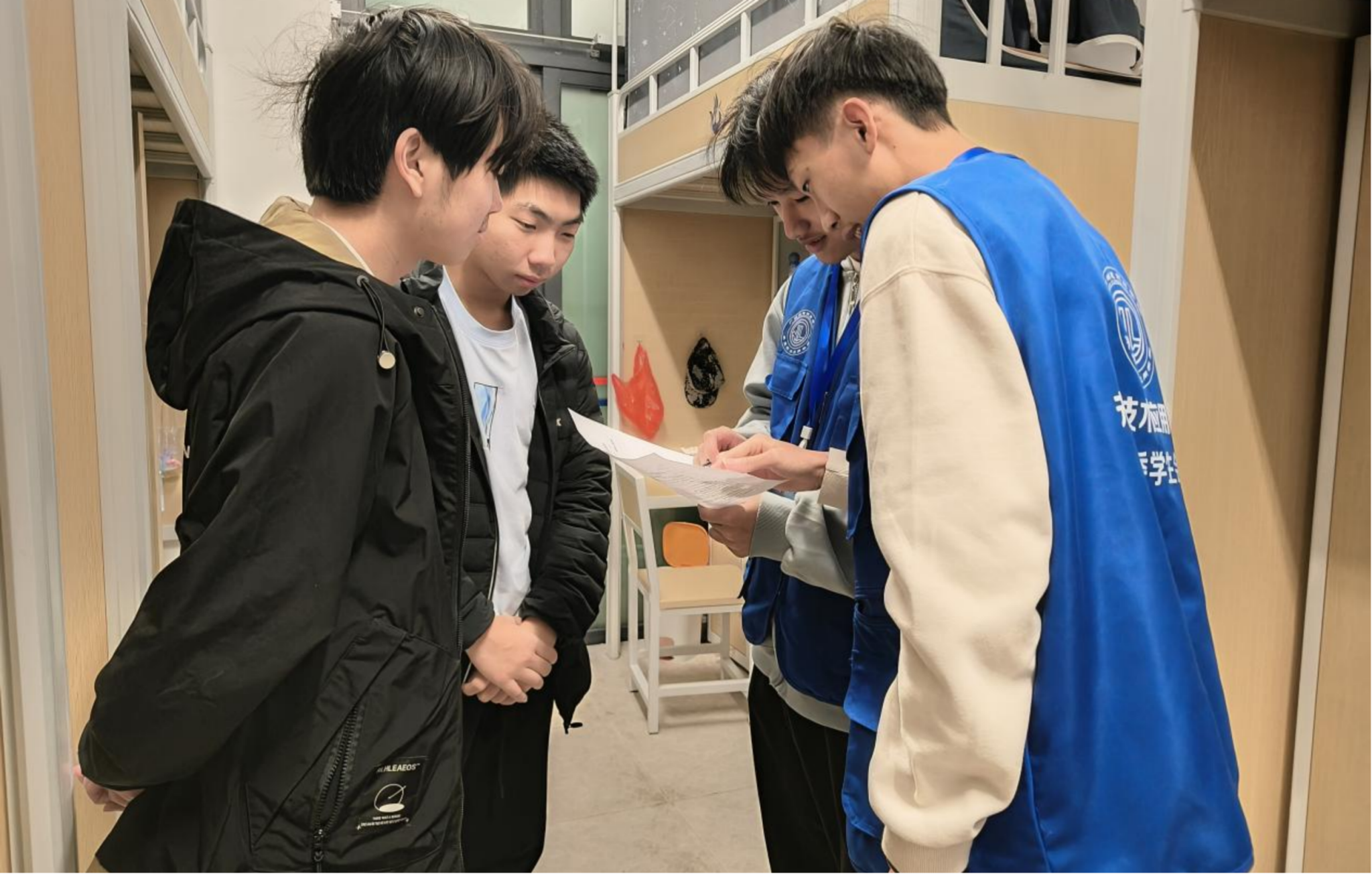 同时,学院领导还特别关注员工的心理健康状况,对于部分因生活不适应或学业压力而情绪低落的员工,及时给予心理疏导和关怀,让员工们感受到学院的温暖与支持。对于走访中发现的杂物堵塞通道等轻微隐患,员工干部现场指导同学们立即整改,对于无法当场解决的问题,由学院与“一站式”社区共同详细记录在案,明确整改责任人与完成时限,实行“回头看”闭环管理。