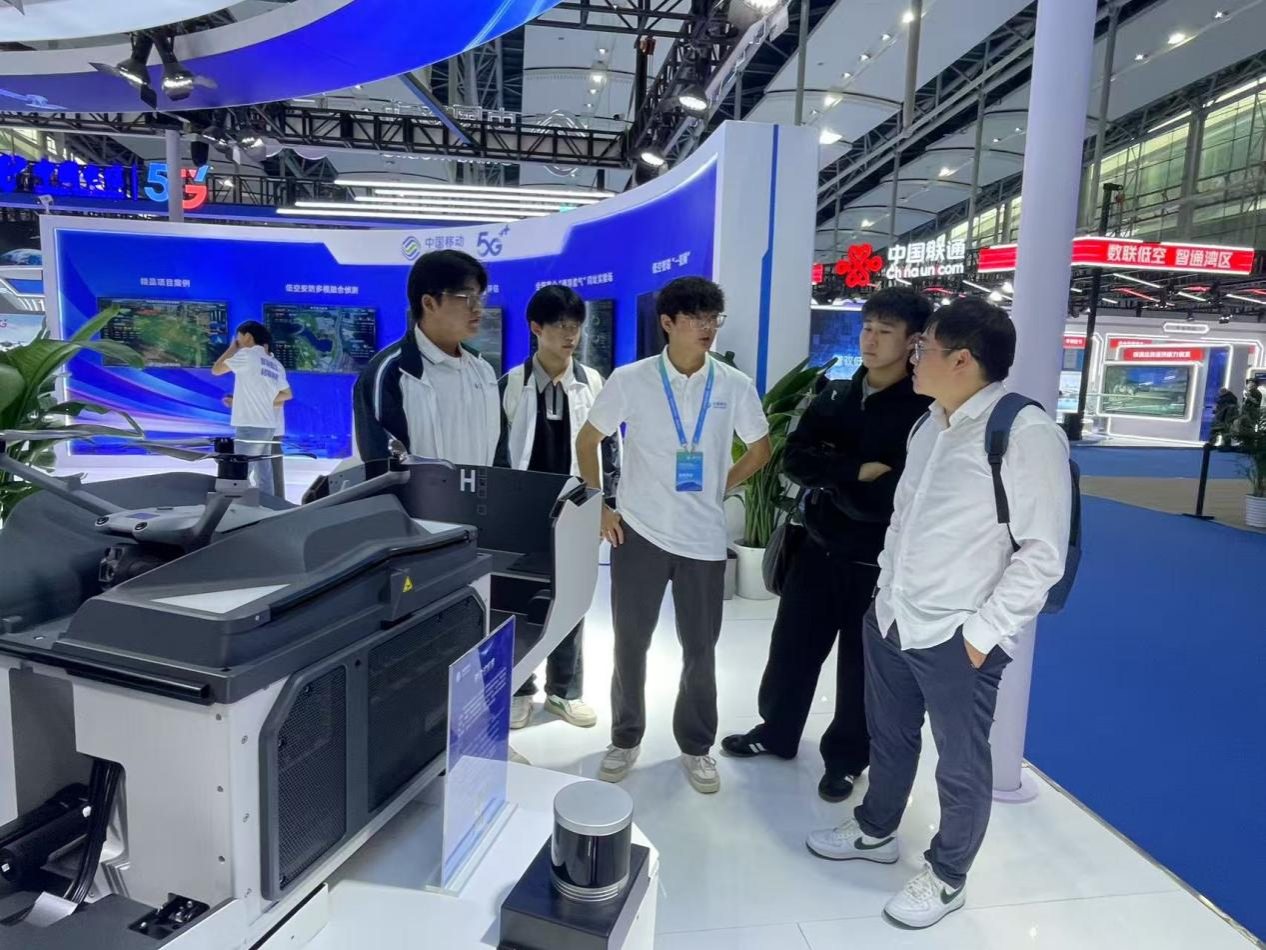 此次参展聚焦低空经济的发展动态、无人机的创新方向及其在多领域的应用。展会呈现了无人机在物流配送、城市交通、环境监测、应急救援等领域的突破性成果。而在智慧城市展区,无人机与5G、人工智能融合的管控系统,更展现出低空经济作为“未来新基建”的潜力。刘俊水老师现场结合实物解读技术路径,为同学们细致讲解无人机动力系统、导航模块及载荷装置的设计原理,将课堂知识转化为立体认知;李浩老师结合政策与市场前景,分析行业趋势;徐金诚老师则带领员工深入企业研发展区,观摩氢动力长航时无人机、集群协同控制系统、智能感知避障平台等前沿成果。老师们以实践为课堂,引导员工了解行业前沿,培养其专业素养与创新能力。